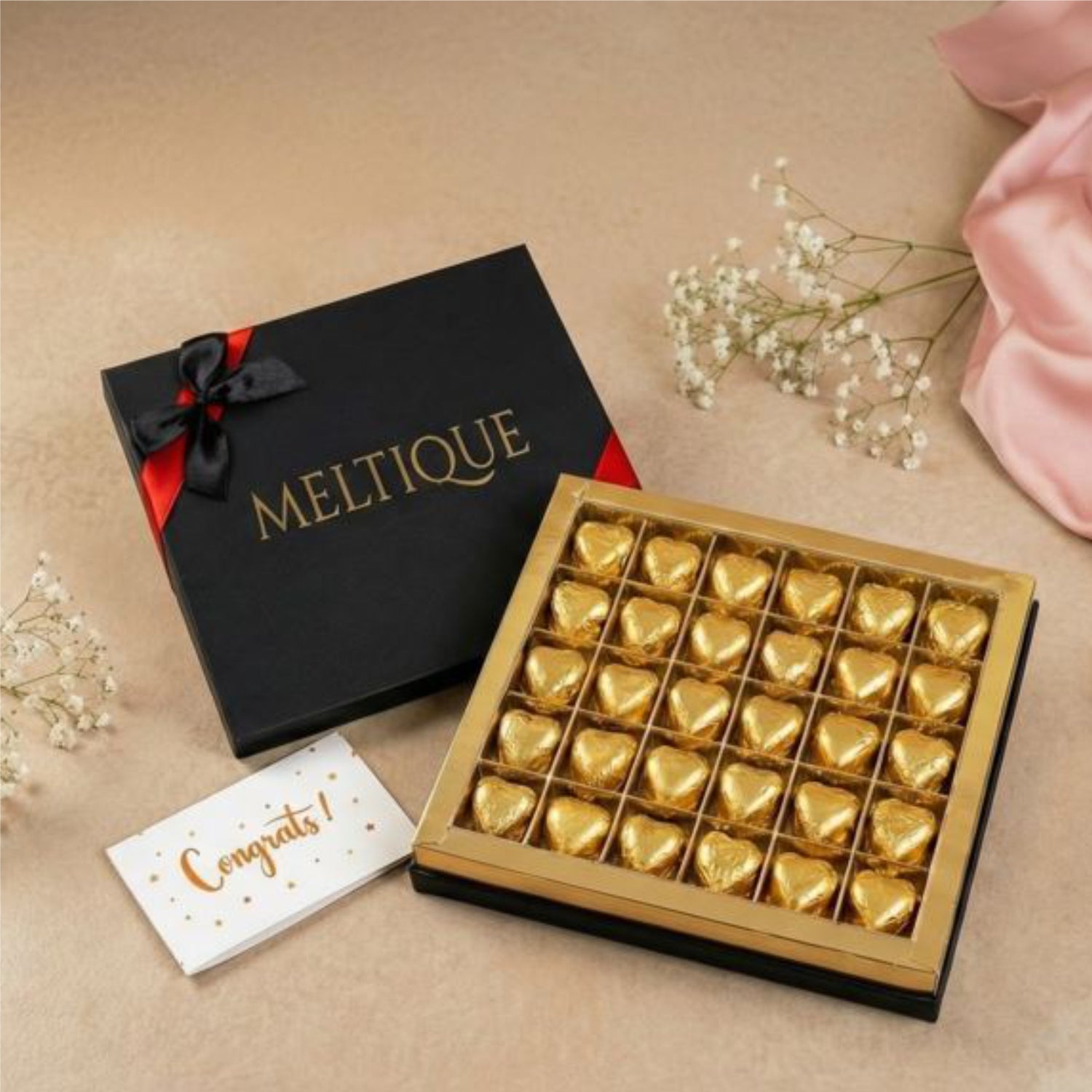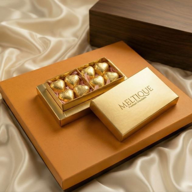 The heart-shaped bonbons are more than chocolate; they are an homage to timeless rituals, blending the earthy freshness of pan with the smooth decadence of Meltique chocolate. Wrapped in elegance,